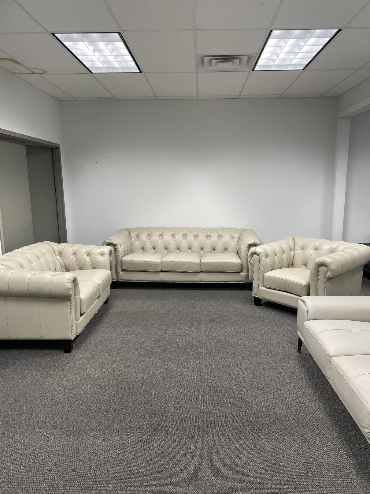 | Description: | Three piece leather set. Cream leather. Couch, loveseat, and chair included. Good used condition. Lots of life left. |