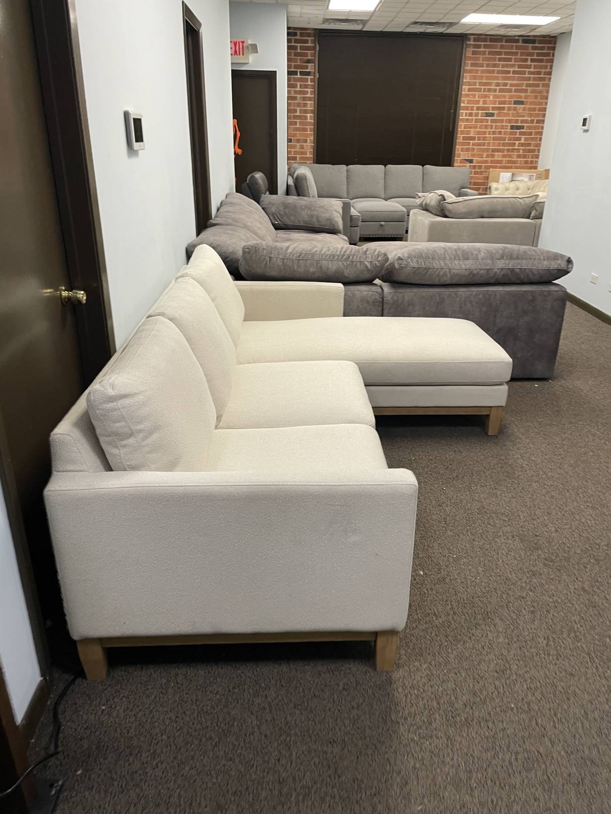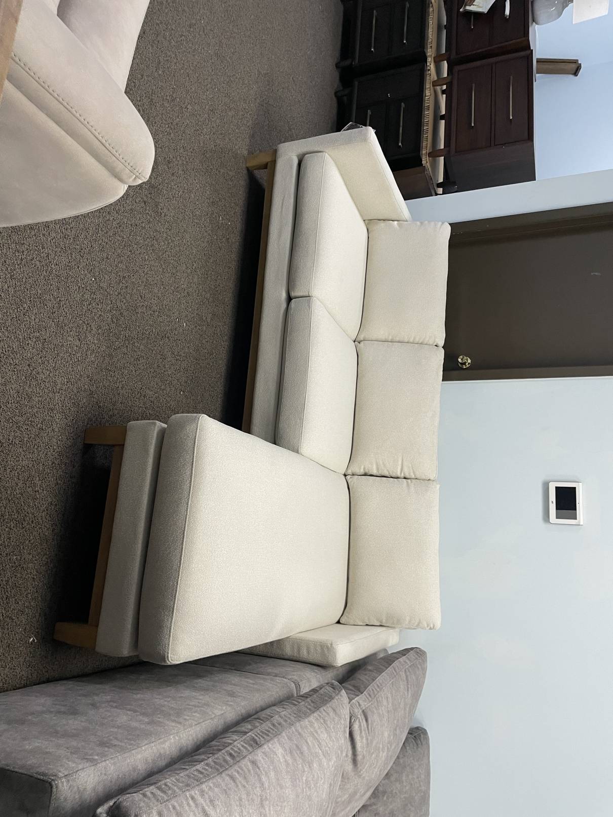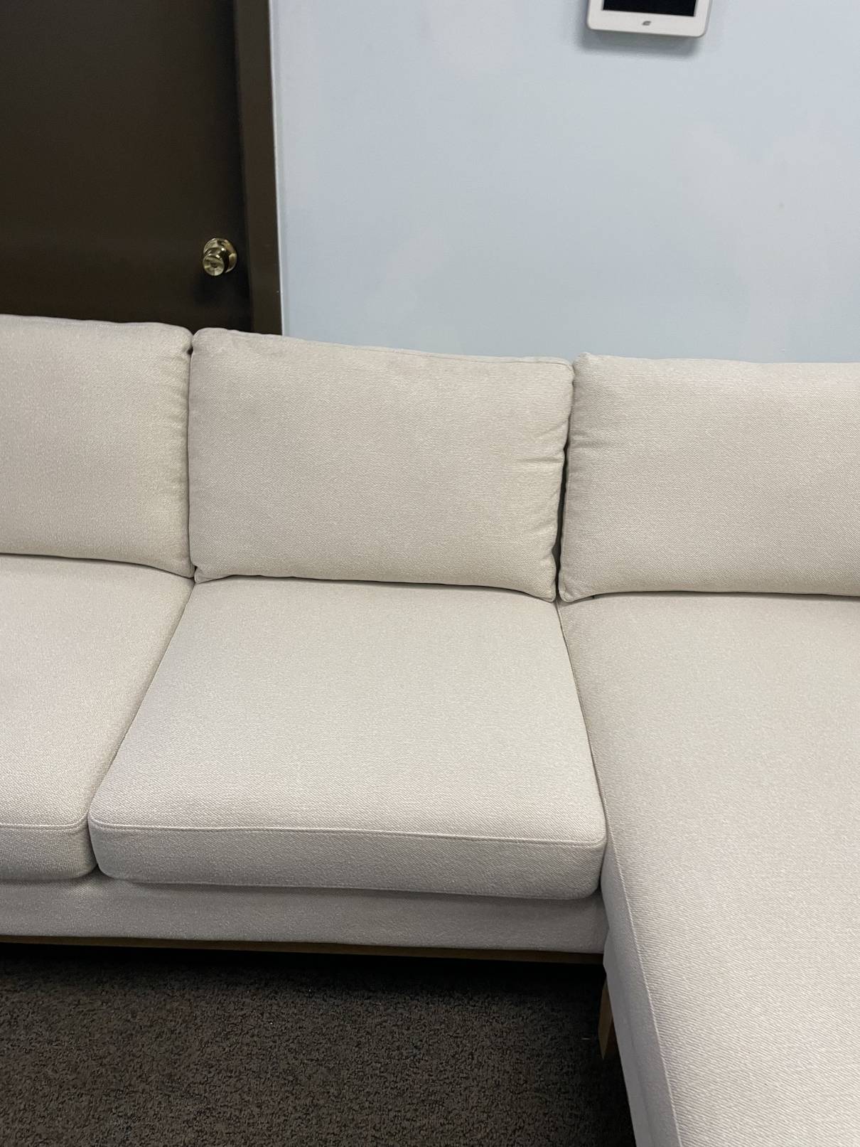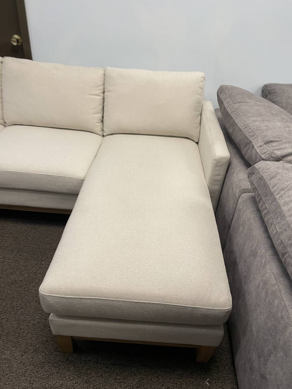 | Description: | Chair not included. Like new condition. No issues. Maybe one or two spots from sitting on my showroom floor. Beautiful and comfy couch with a reversible chaise. Ask about delivery or coming to see it in person. |