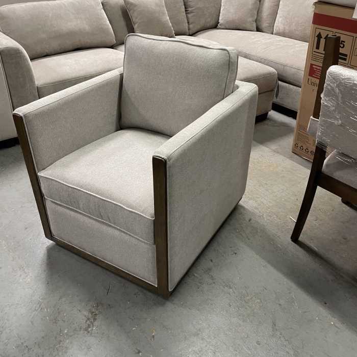 Thomasville Ash Fabric Swivel Chair with Wood...
